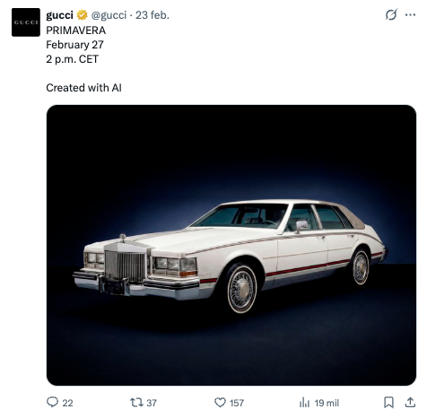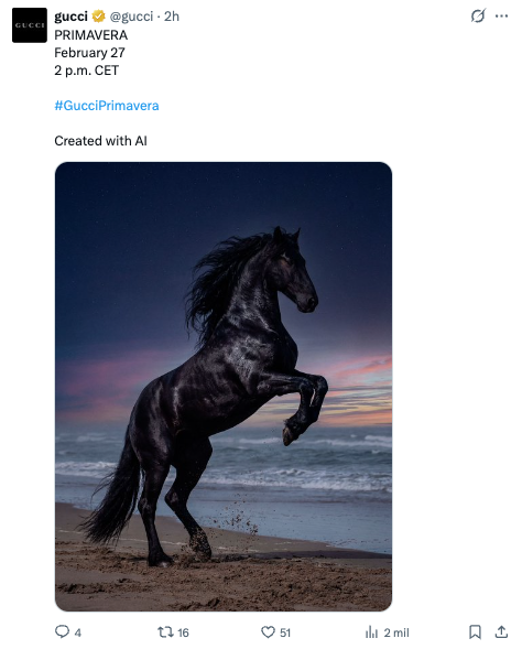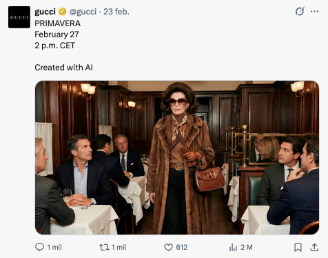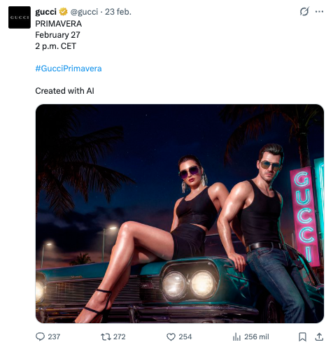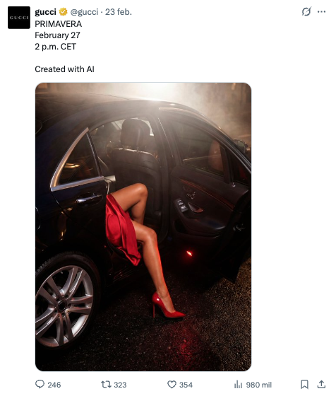 グッチの画像に対するユーザーの反応は、社会の大部分が依然として人工知能に関して否定的な認識を持っていることを示しています。 認識と倫理の観点からテクノロジーの使用がどのように戦略的であるべきか、 特に特定のカテゴリーのブランドの場合。