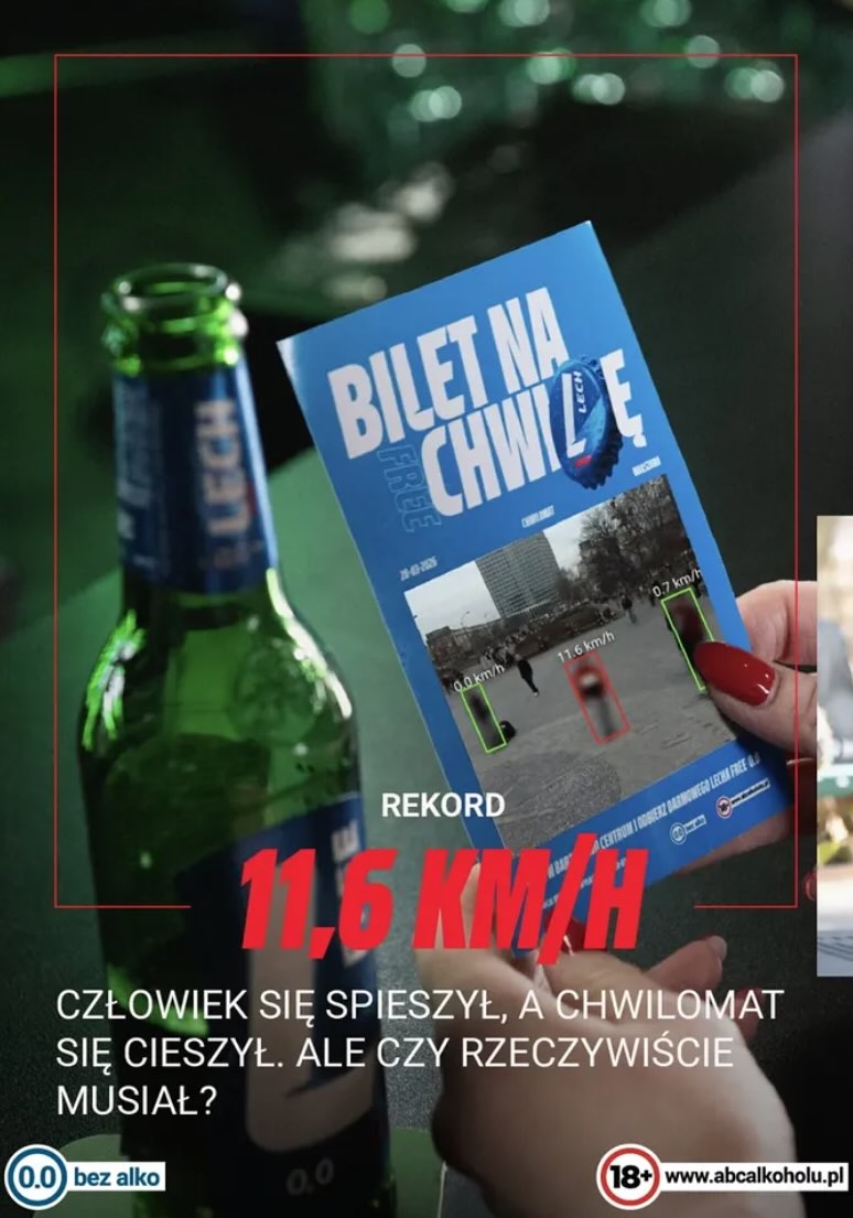 通行人が通常の動きを少し止めてくれることを補償するというアイデアは、ストリート マーケティングの新しいアクションを明確に示しています。 ビール ポーランドのレッヒ、 この瞬間を楽しむためのポジショニングを強化することを目的として、一種の歩行者レーダーを設置しました。