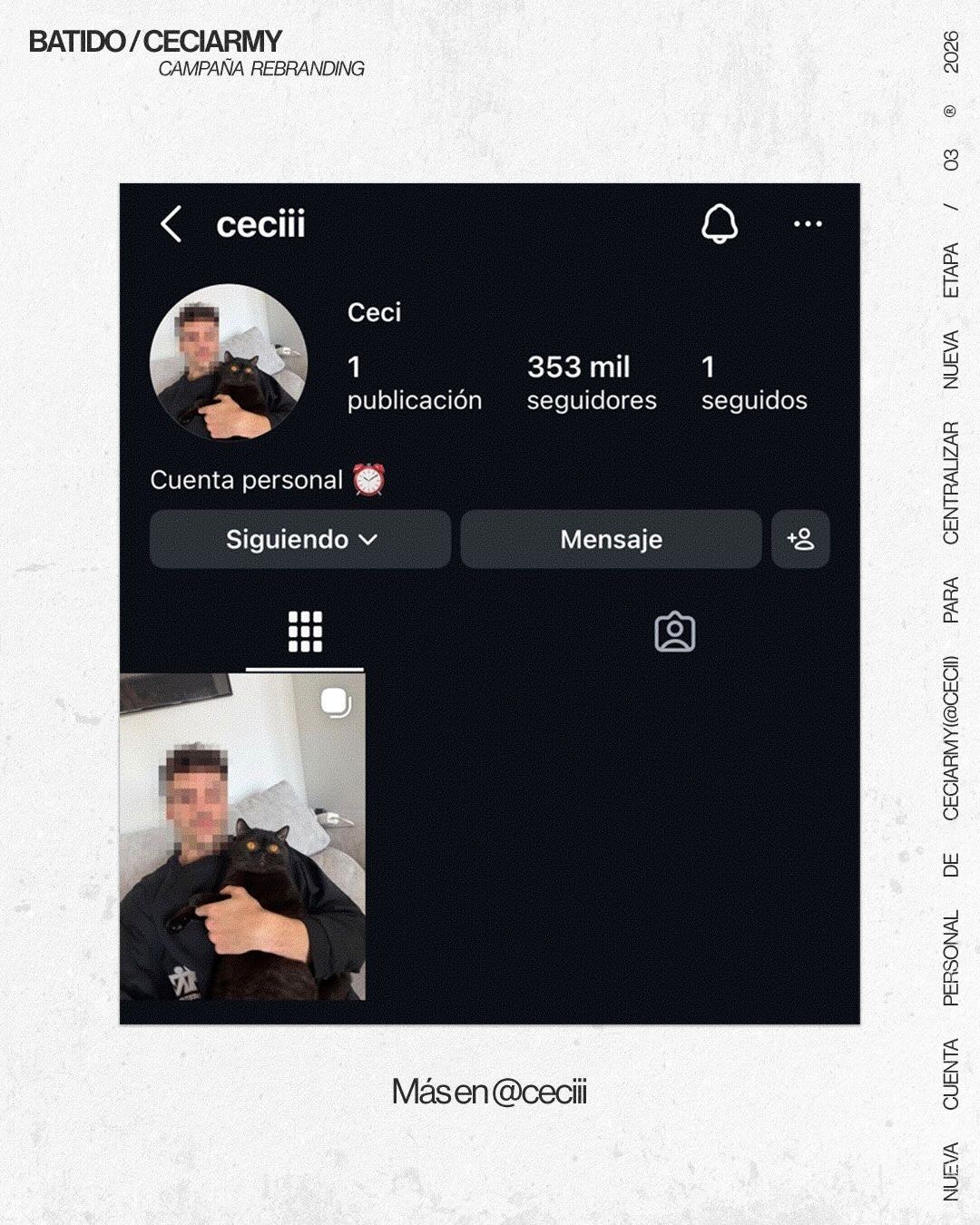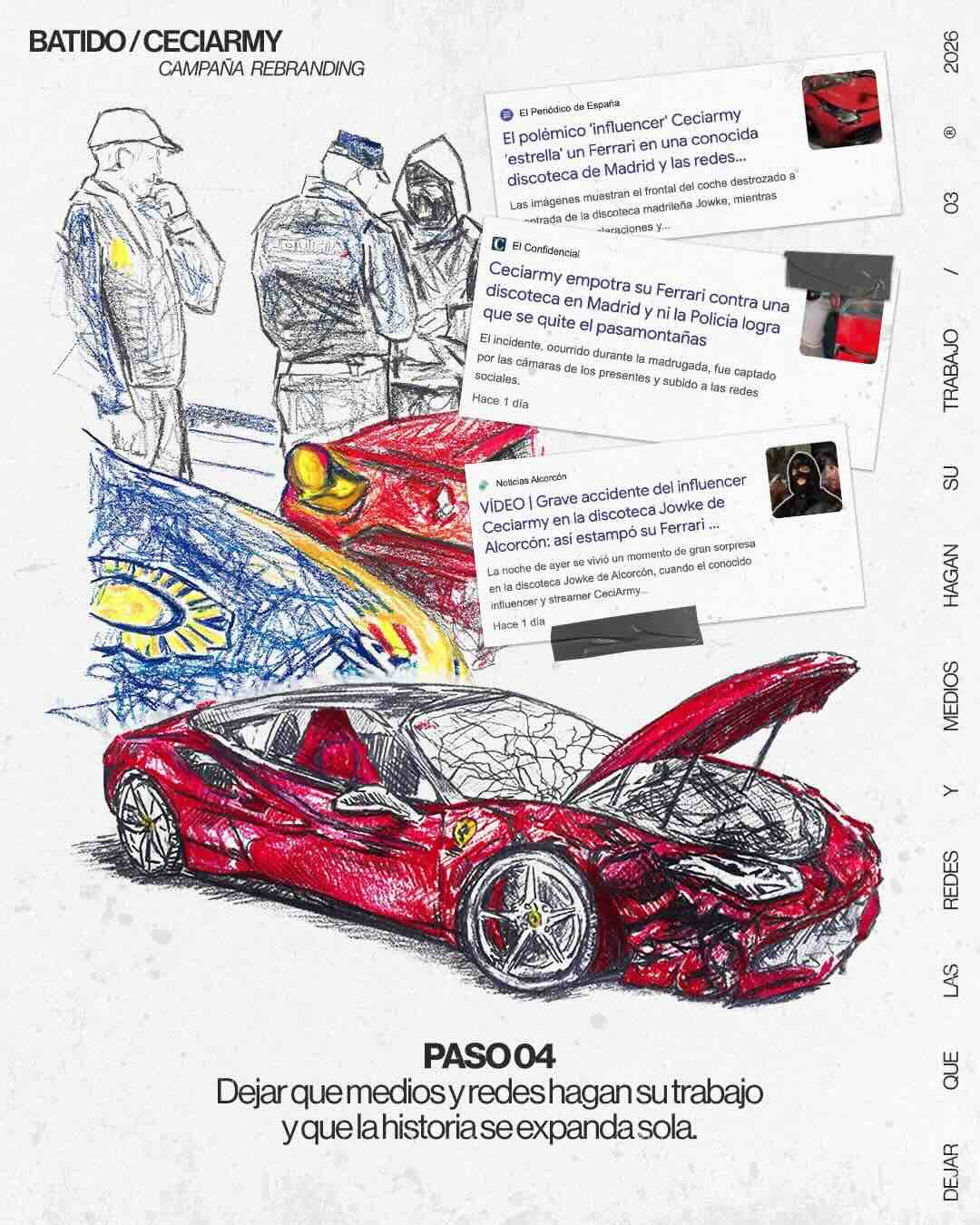 この取り組みは以下の企業と協力して実施されました。 殴られた、 ソーシャルネットワークとクリエイターのマルチメディアプロジェクトに特化したクリエイティブコンサルティング会社 ニル・オジェダ そして、Ceciarmy の悪名とソーシャル ネットワークとメディアの増幅力を利用して、クリエイターが新しいコンテンツを一元化するために立ち上げた新しいアカウントの認知度を高めようとしました。