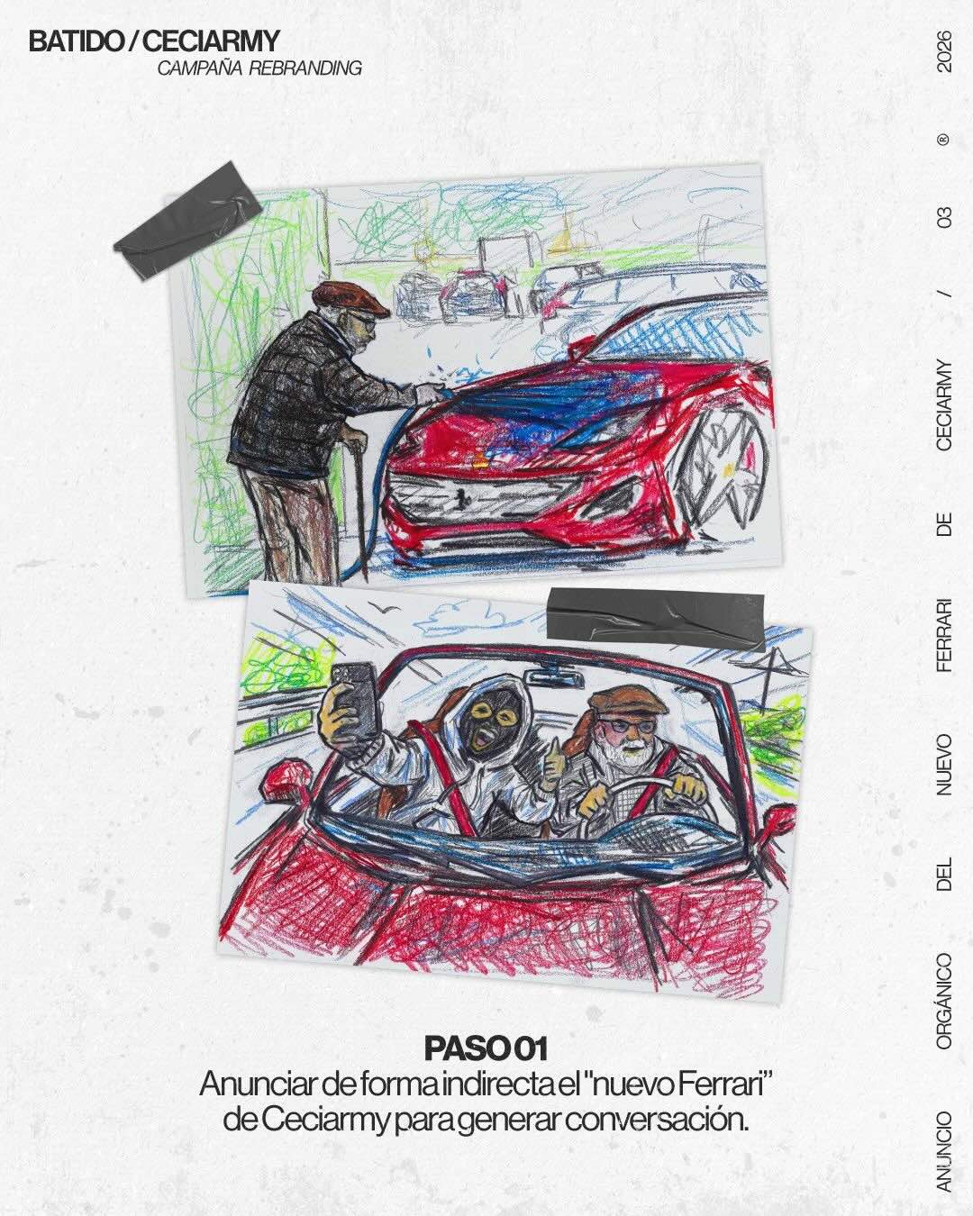 この戦略は以下の開発で構成されています。 物語 Ceciarmy の新しい車、フェラーリについて。最初のビデオでは、作成者が車を洗ったり、モデルに憧れる年配の男性と話したりする様子が見られました。男の熱意に動かされ、セシアーミーが取り組む新たなステージを反映して、彼は彼の願いを叶えることを決心し、彼に車の運転を許可しました。