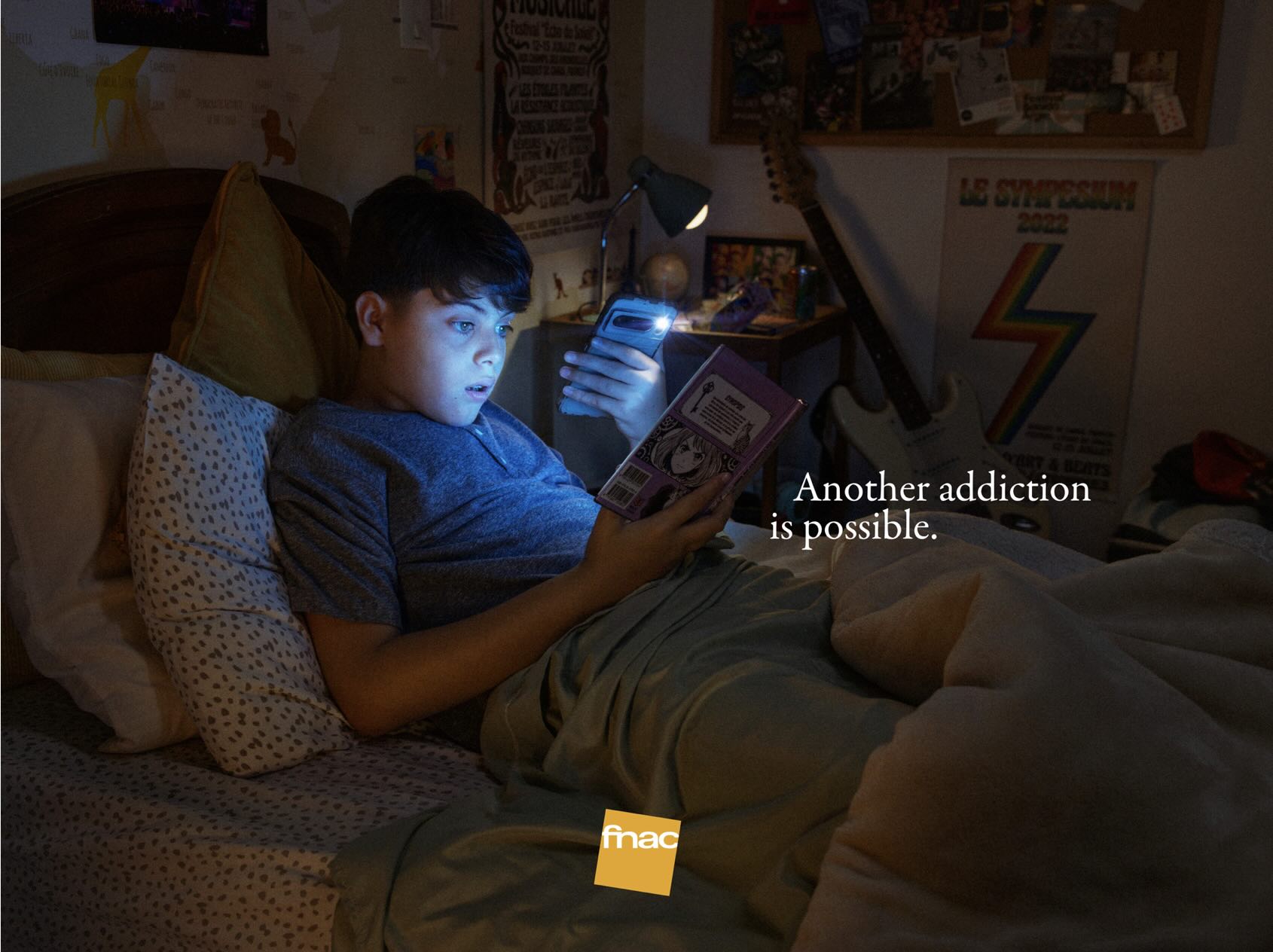 クリエイティブエージェンシーが開発 ピュブリシス・コンセイユ そして写真家さんと エール・バーセット、 同社は「Une autre中毒 est possible」(別の中毒の可能性がある)を立ち上げた。これは、本をスクリーンと同等かそれ以上に魅力的な娯楽として表現しようとする写真シリーズです。フナックの意図は 読書を促進する 現代的で望ましい、感情的な選択肢として。