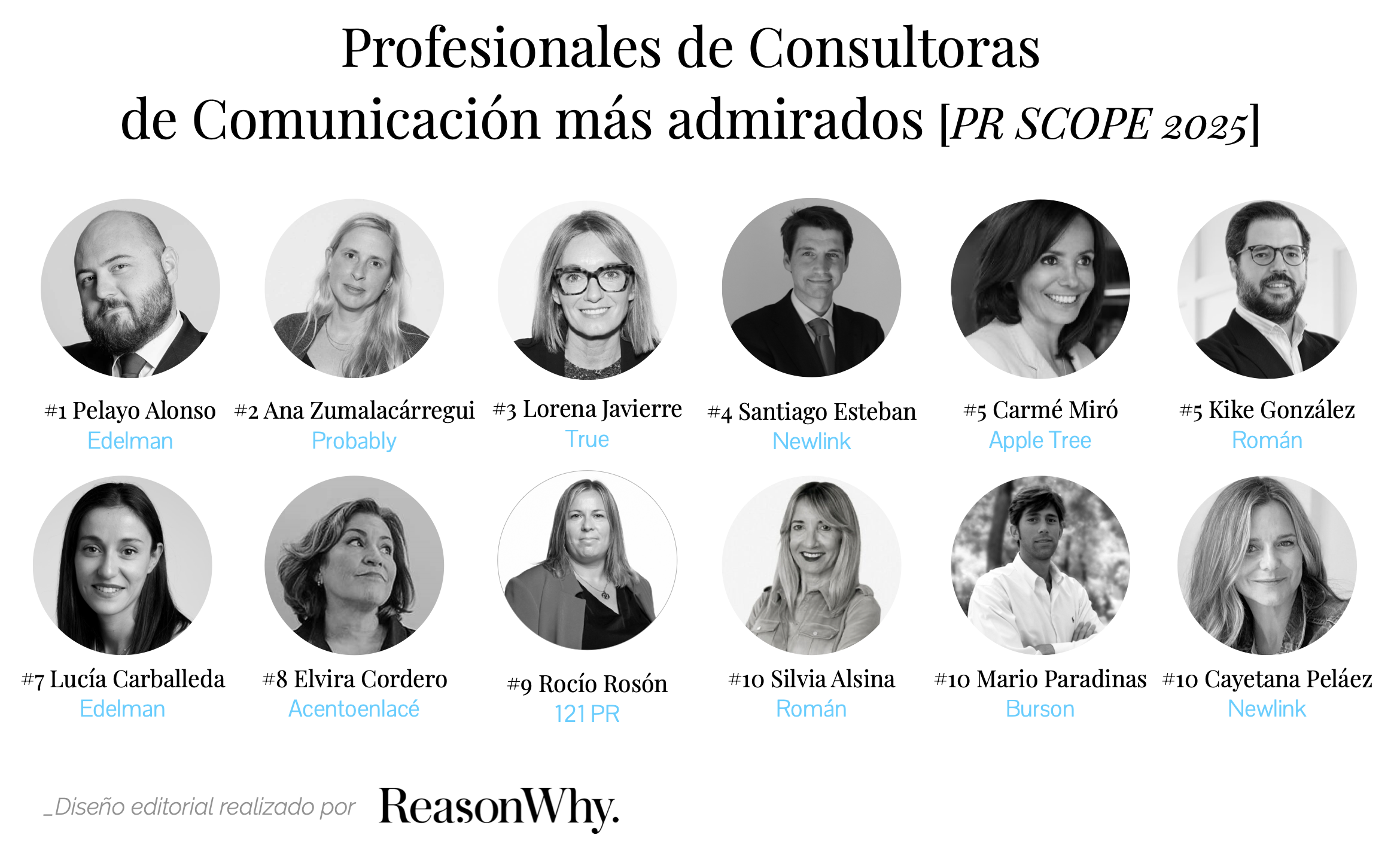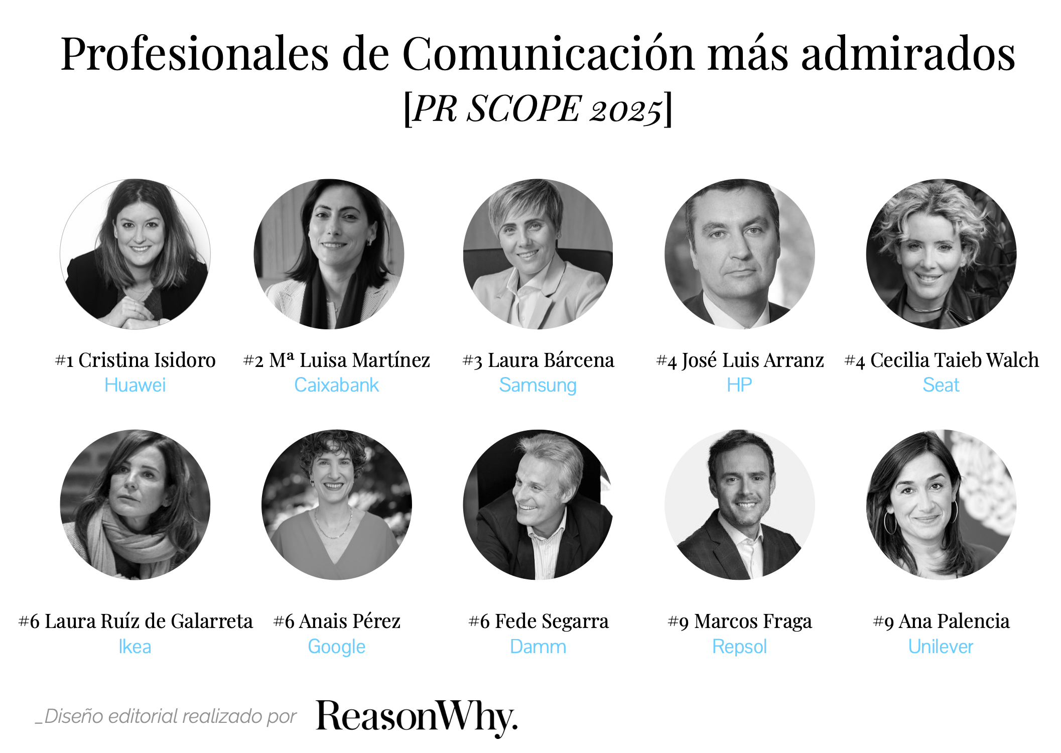 - より賞賛される企業のコミュニケーションの専門家:彼はリストの先頭に立っています。クリスティーナ・イシドロ(huawei)に続いて、マリア・ルイサ・マルティネス(カイザバンク)とローラ・バルセナ(サムスン)が続きます。