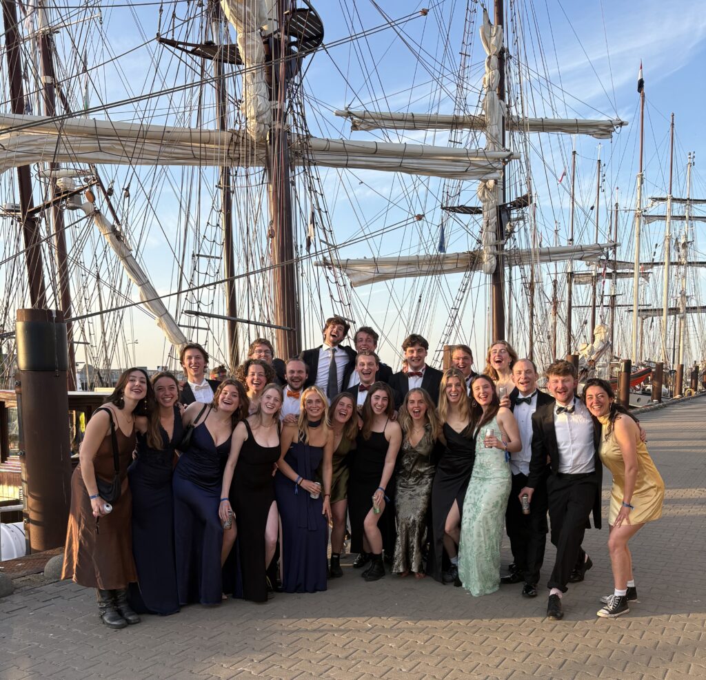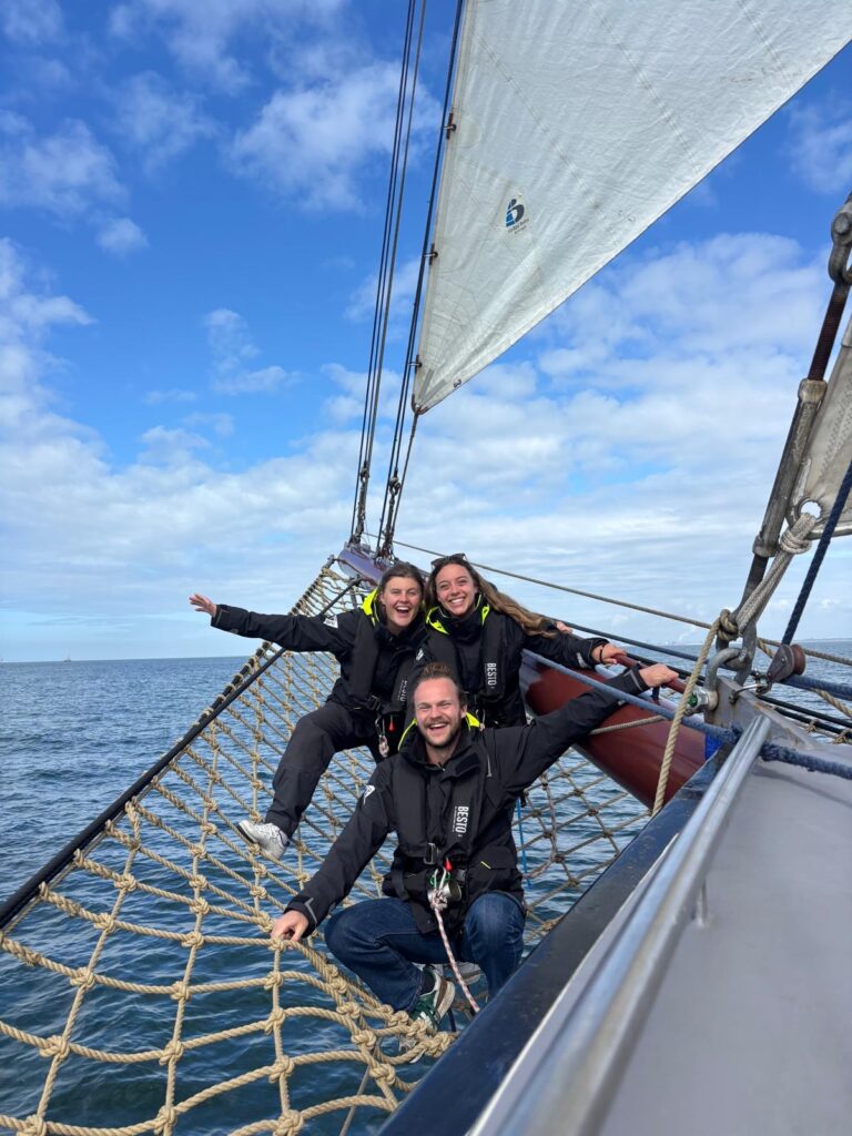 レースの目的はイギリスを往復することです。ヴィーゲリンク: 「しかし、風が弱すぎて横断することができませんでした。」学生船員たちはスヘフェニンゲンからブレスケンスまで、ヘレヴォエツルイスとスヘフェニンゲンを経由してベフェルワイクまで1週間かけて航海し、アムステルダムに到着した。そしてそれもとても楽しかったです。私たちはオランダの海岸に比較的近いところに滞在していましたが、こんなに家から近いとは思いませんでした。特に海岸線が見えなくなっても、やはり遠くに感じます。