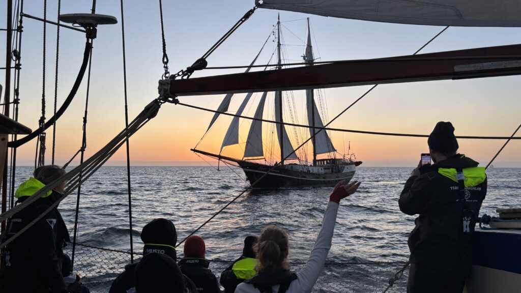 「夜のセーリングもとても涼しかったです」とグスタフソンは続けます。 「はるか沖合の風車から赤い光が点滅しているのが見えるだけで、時には他の帆船が帆を上げ下げするために作業灯を点けることもありますが、それ以外は暗い星空の下を航行することになります。海の中では海がキラキラと光り、青い藻も見えました。とてもクールです!